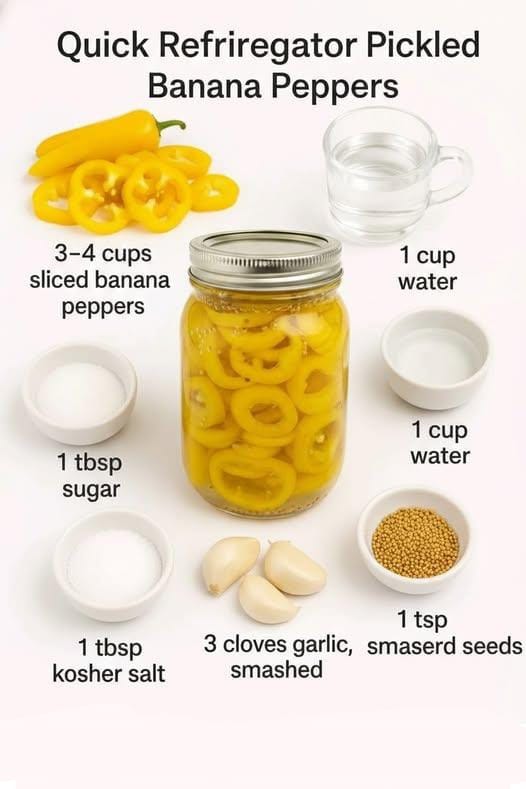 Quick Refrigerator Pickled Banana Peppers – No Canning, No Fuss! These pickled banana peppers have become my go-to topping for everything. They’re tangy, slightly sweet, and way better homemade than anything you’ll find in a jar. Perfect on salads, sandwiches, pizzas, wraps — you name it. And just like jalapeños, no canning needed!