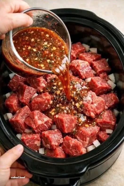 Tip: The beef is ready when it easily shreds with a fork but still holds its cube shape.
