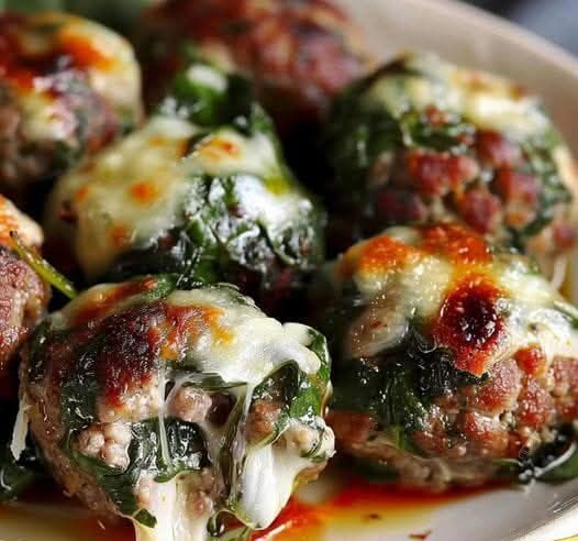 In a large bowl, combine ground meat, chopped spinach, garlic, breadcrumbs, Parmesan, egg, salt, pepper, and Italian seasoning.