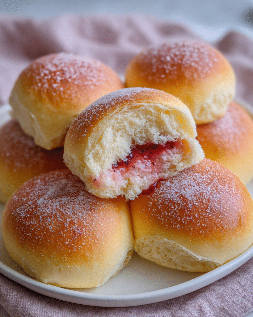These Strawberry Milk Bread Buns are the perfect combination of soft, sweet dough and a fruity strawberry jam center. Theyโre perfect for any occasion, whether itโs a cozy morning breakfast or a special treat for guests. The rich, fluffy texture of the bread paired with the sweet jam filling makes these buns a memorable indulgence you wonโt want to miss!