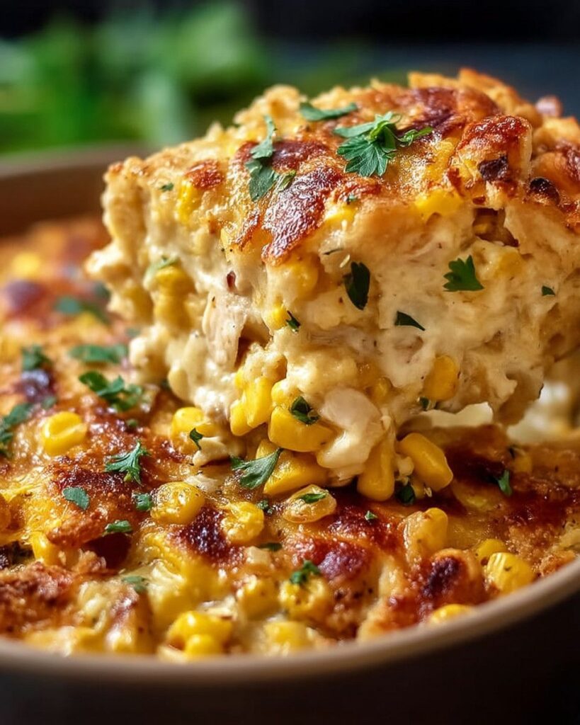 This Street Corn Chicken Casserole is creamy, cheesy, zesty, and packed with bold flavors inspired by Mexican street corn. Juicy shredded chicken, sweet corn, lime, spices, and loads of melty cheese come together in one comforting bake thatโs perfect for weeknight dinners, potlucks, or meal prep. Itโs rich, satisfying, and always a crowd-pleaser.