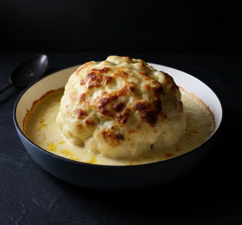 Whole Cauliflower Cheese (Golden Baked Cauliflower in Creamy Cheese Sauce)